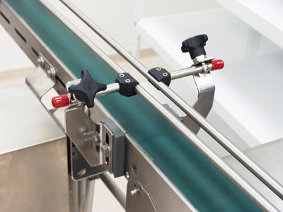 Transportation of products while ensuring necessary spacing in front of dynamic checkweighers. This application uses a design with two-stage acceleration of the conveyor with a single drive.